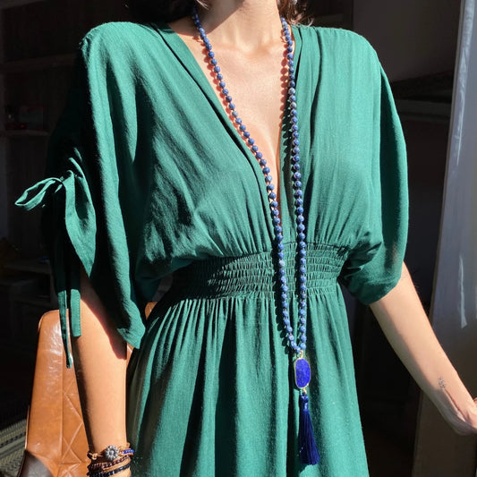 Colar Japamala Intuição - Amazonita, Ametista e Howlita Branca