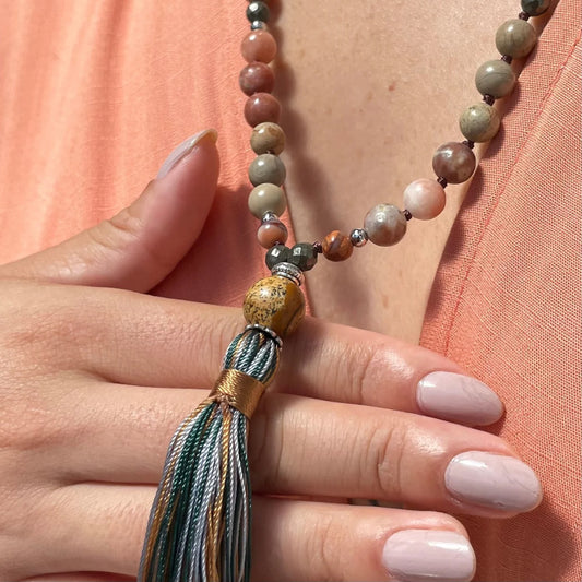EsgotadoColar Love Energy - Jaspe e Pirita