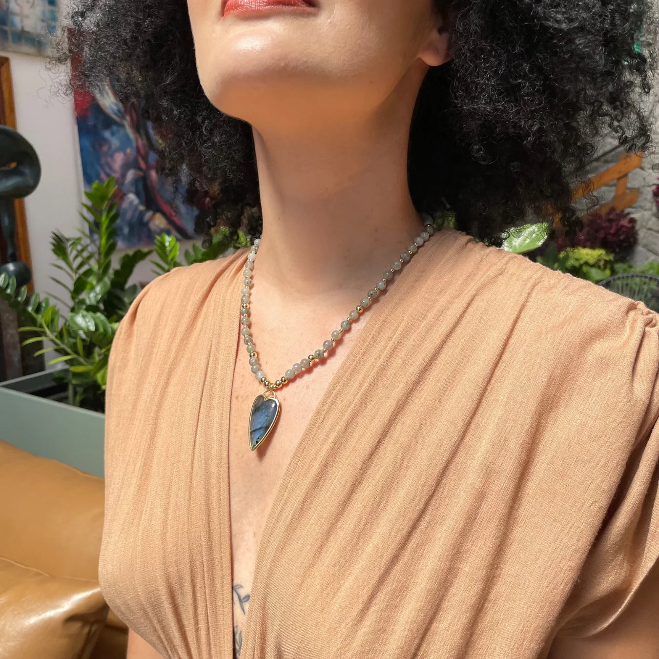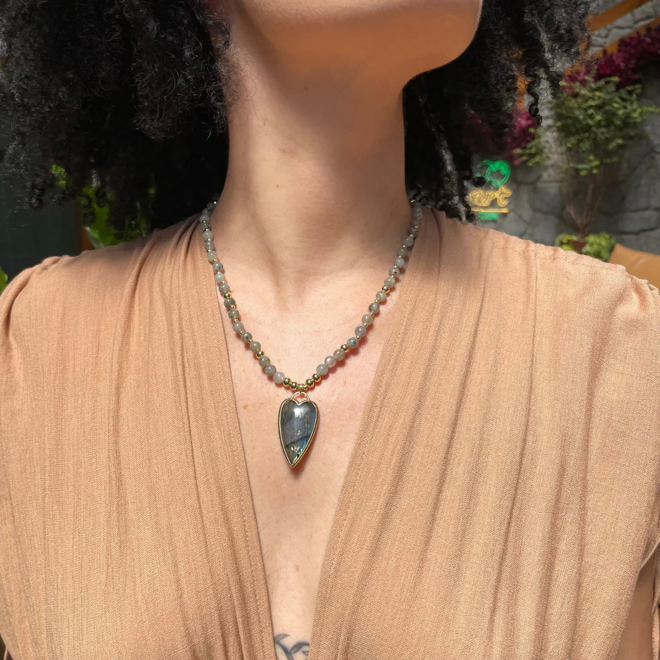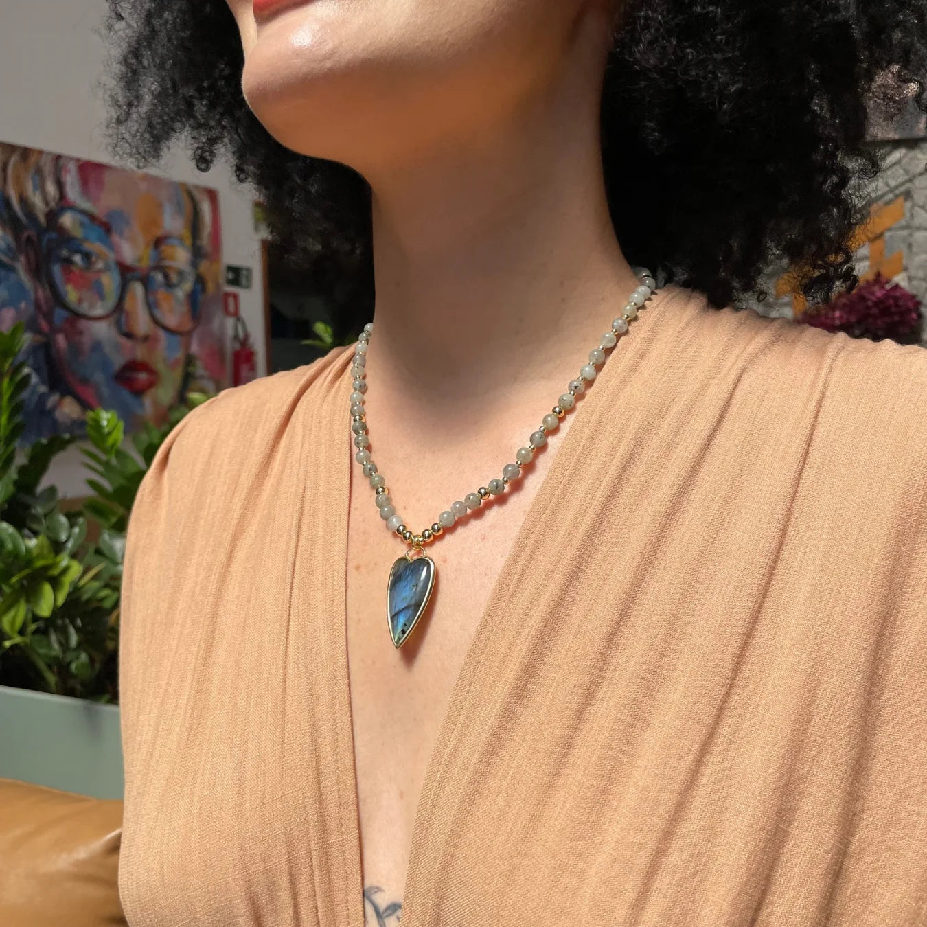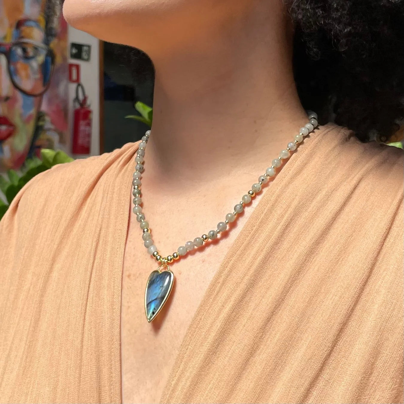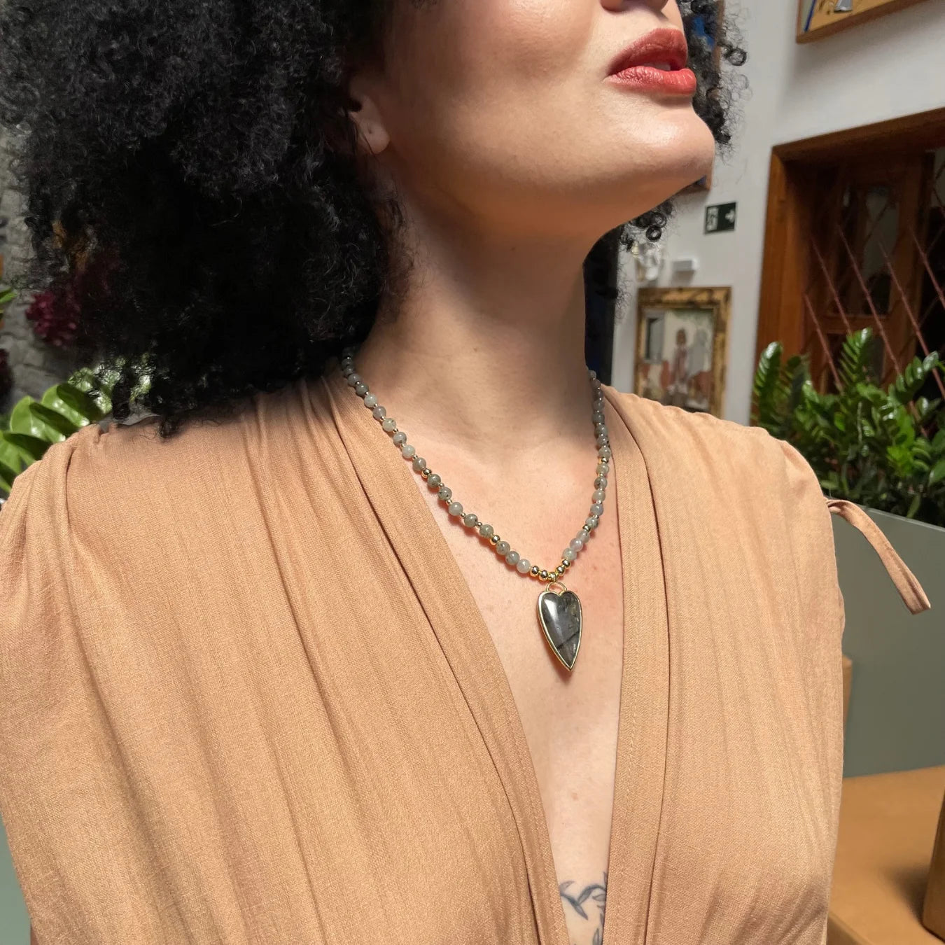 Encanto e magia, o Cola Elegance Labradorita é a peça perfeita pra você que está em busca de um contato maior com a sua força interior.