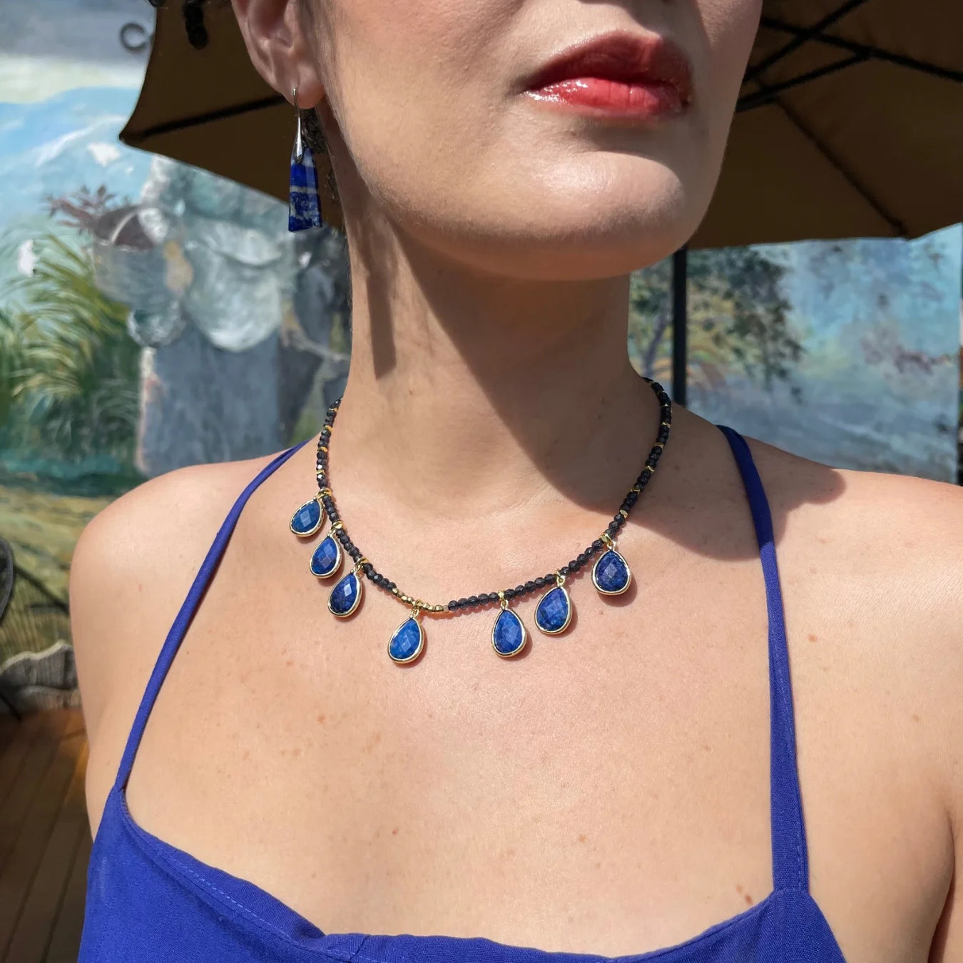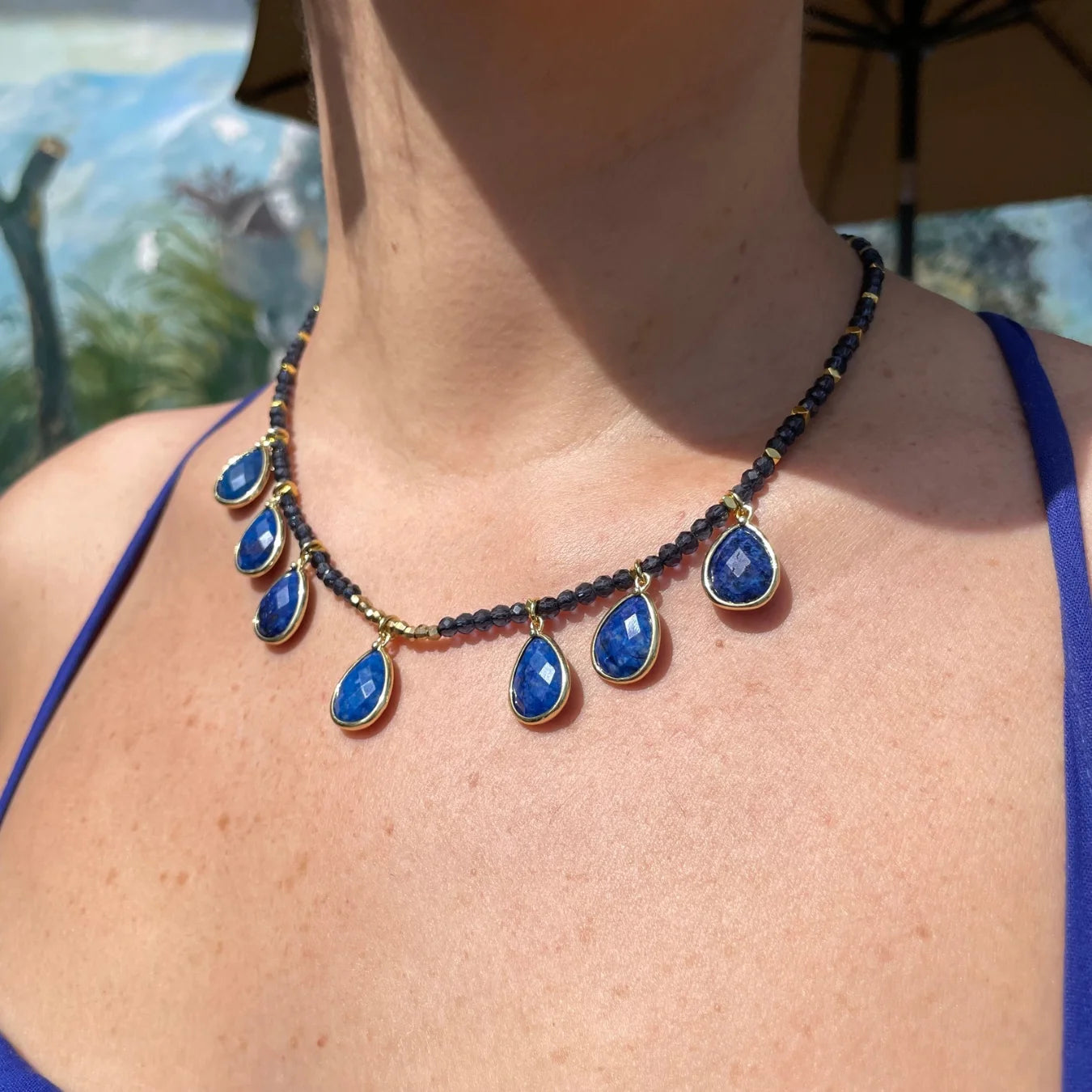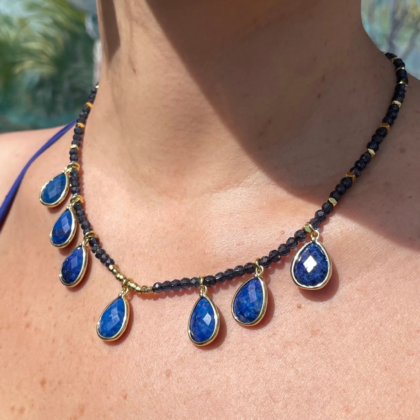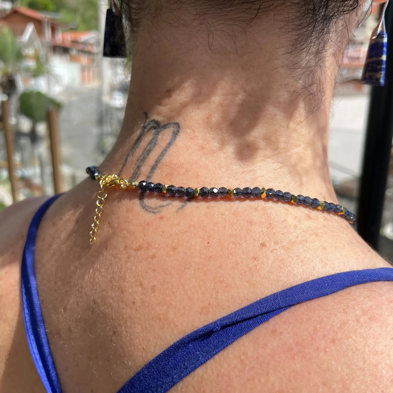 O Colar Mônaco, é uma celebração da delicadeza e da energia transformadora da Pedra Lápis Lazuli.