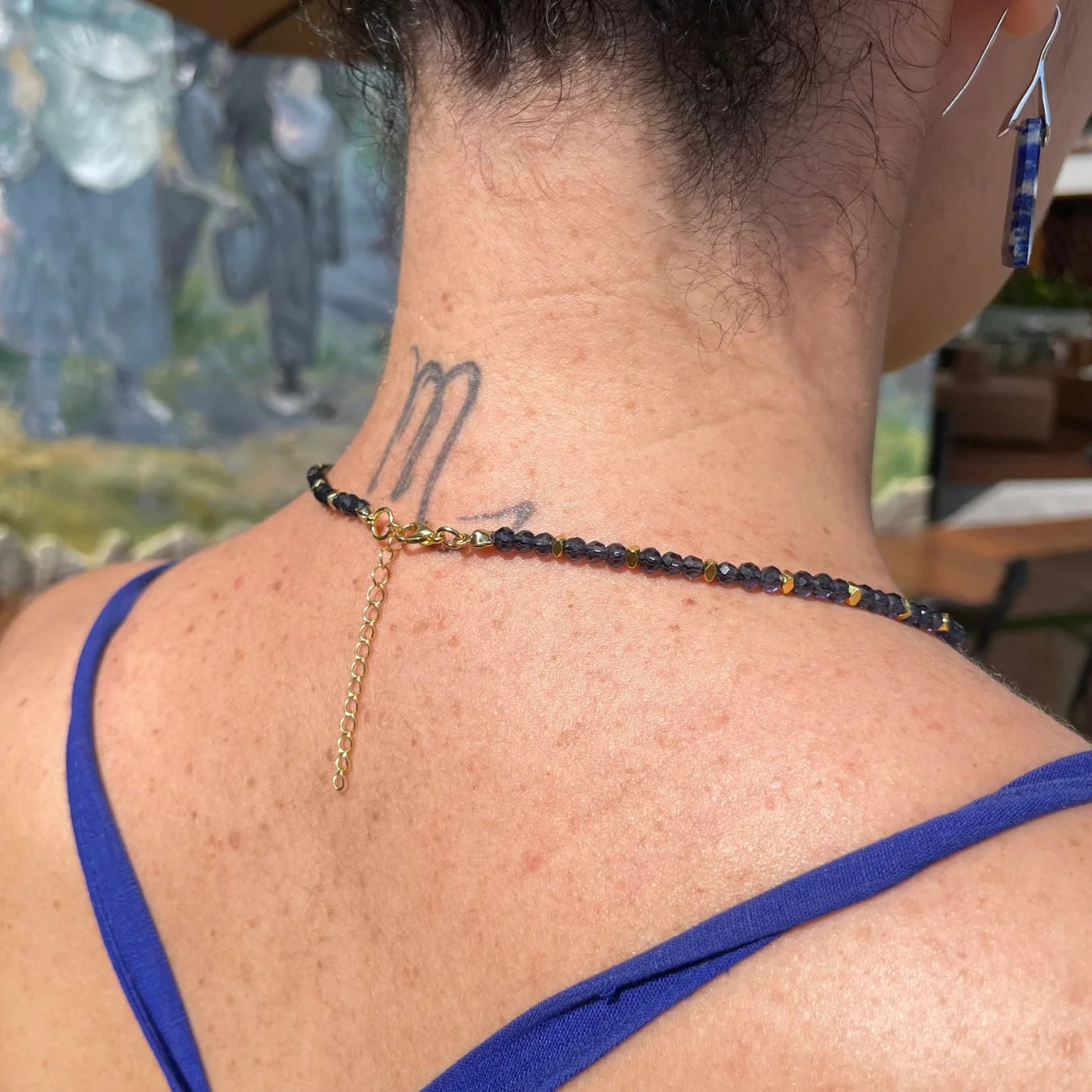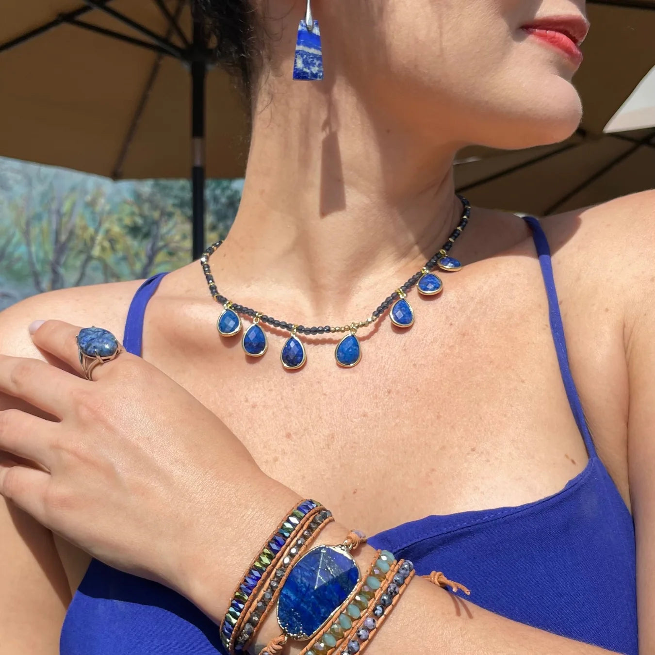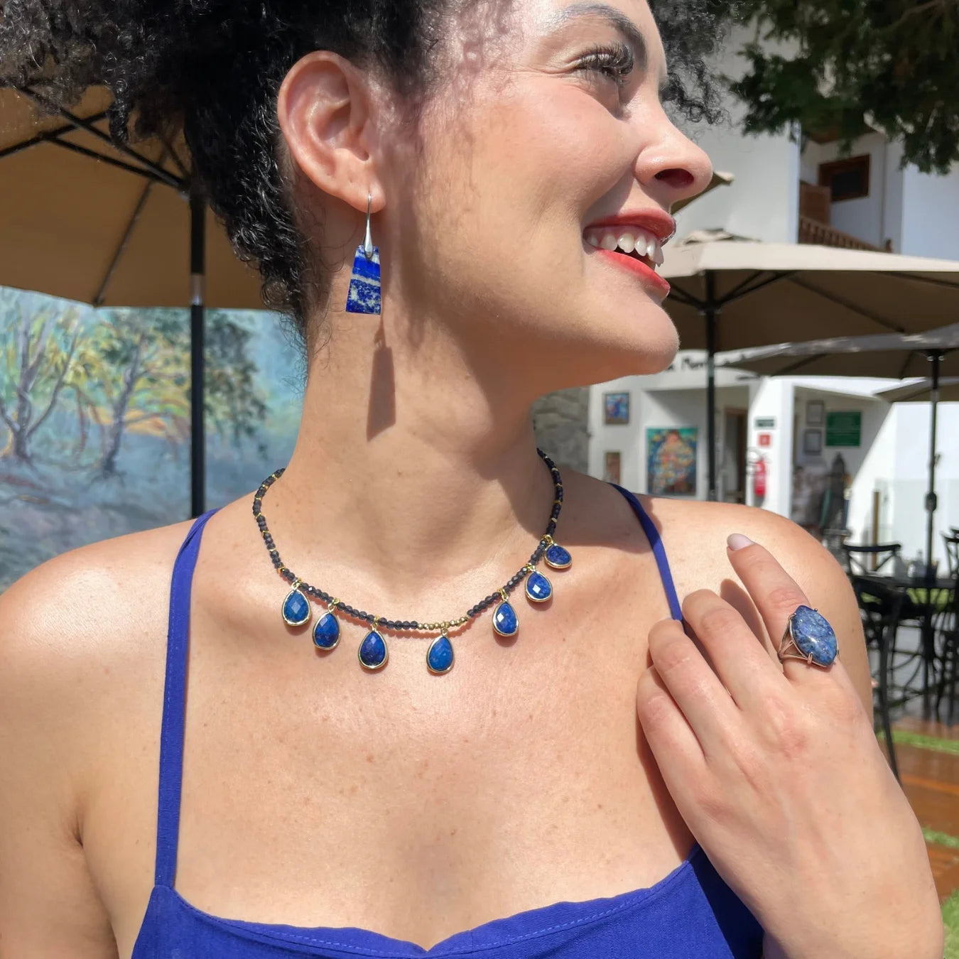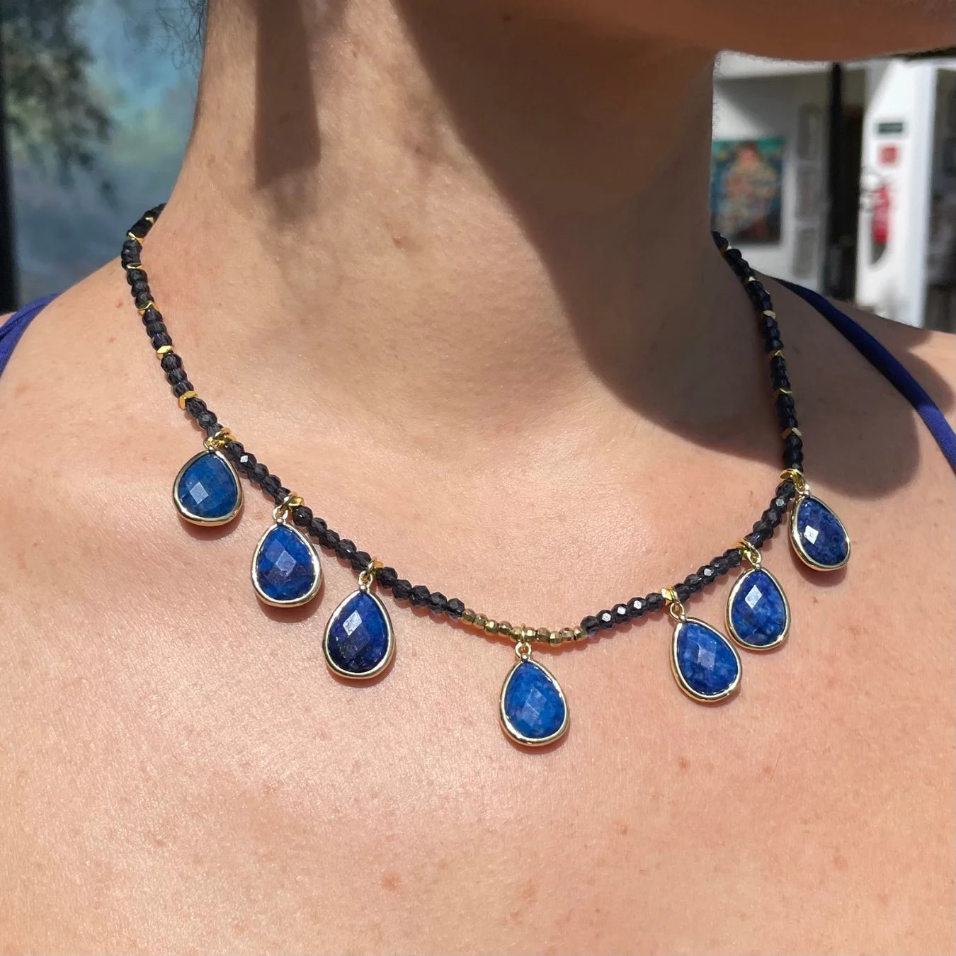 O Colar Mônaco, é uma celebração da delicadeza e da energia transformadora da Pedra Lápis Lazuli.