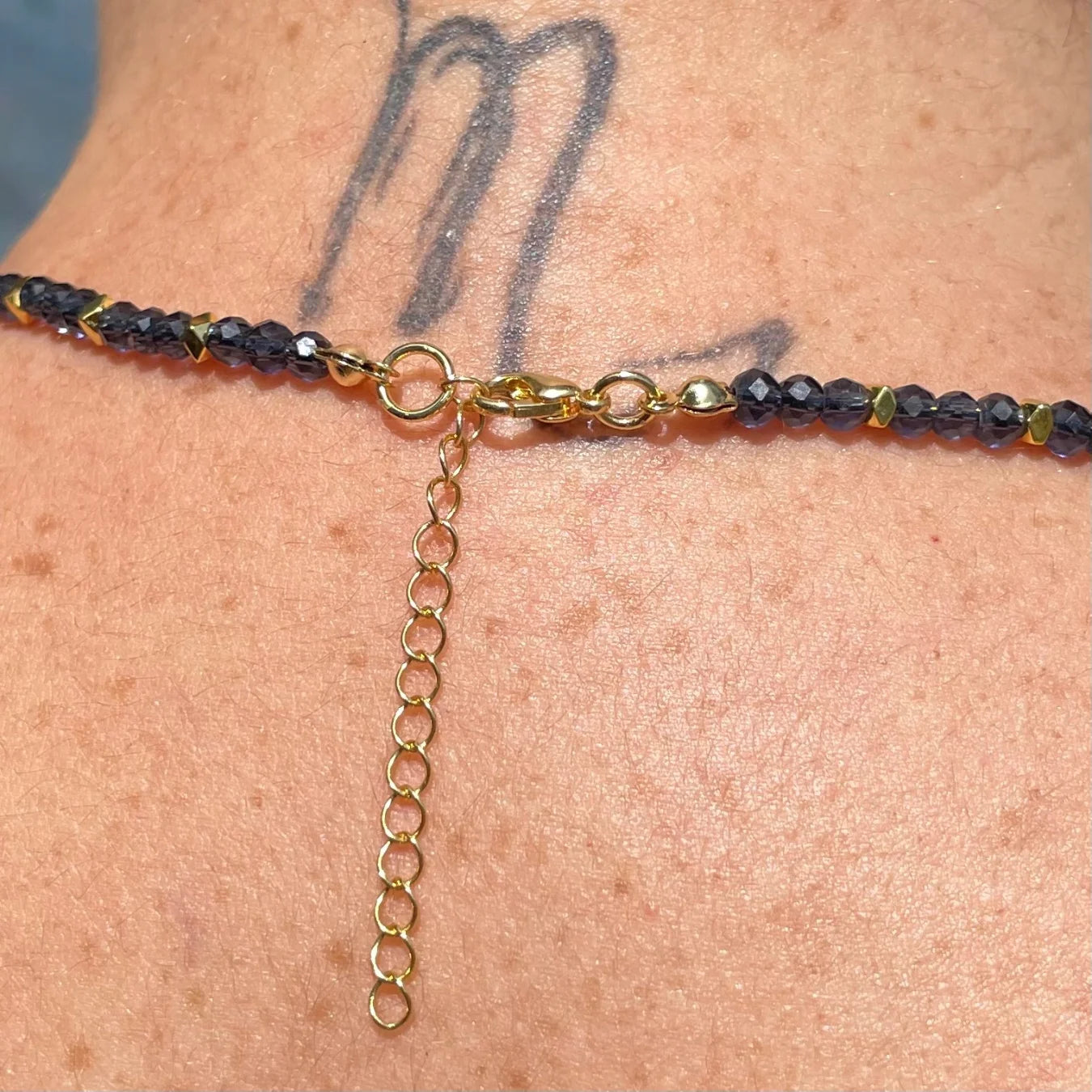 O colar Mônaco possui 40 centímetros de comprimento e mais 5 centímetros de extensor