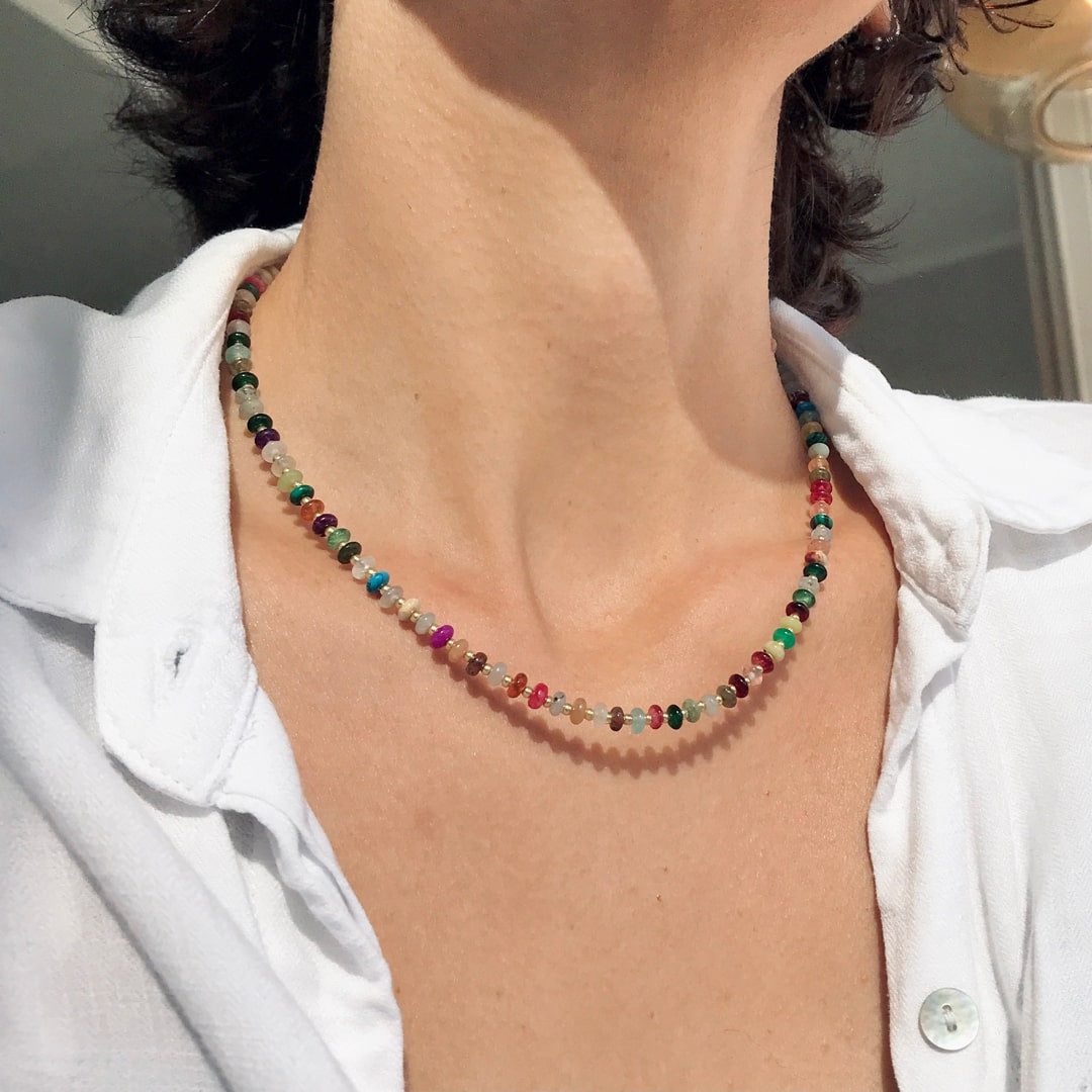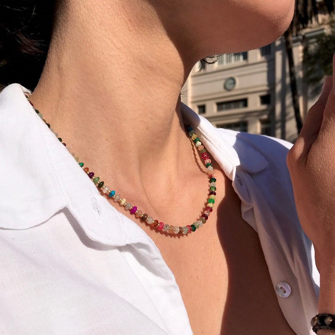 O colar feminino Tropical Vibes é a escolha perfeita para quem deseja adicionar um toque de cor e elegância a seu look. Com um mix de várias pedras naturais coloridas, este colar é uma peça única e deslumbrante que atrai todos os olhares.