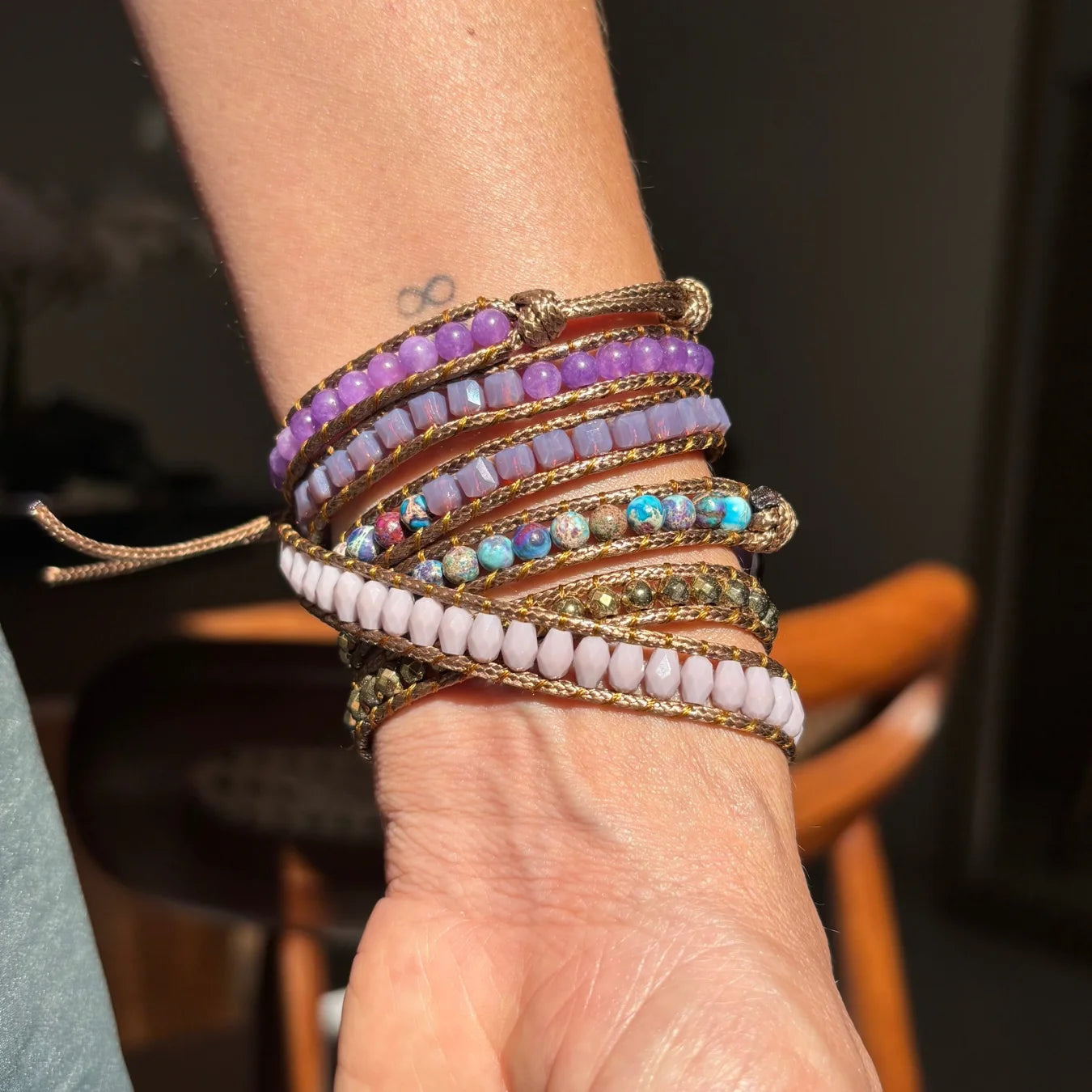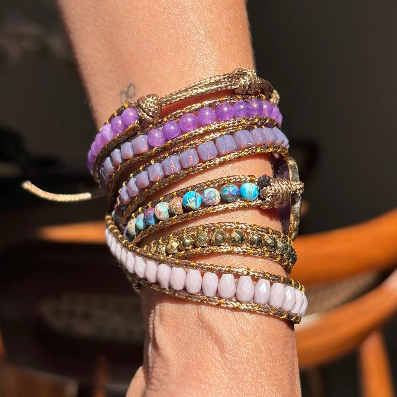 Começamos a produzir manualmente, peça por peça... inicialmente com pulseiras e colares, porque percebemos que as pessoas poderiam obter os benefícios energéticos das pedras naturais, através do uso constante delas como acessórios...