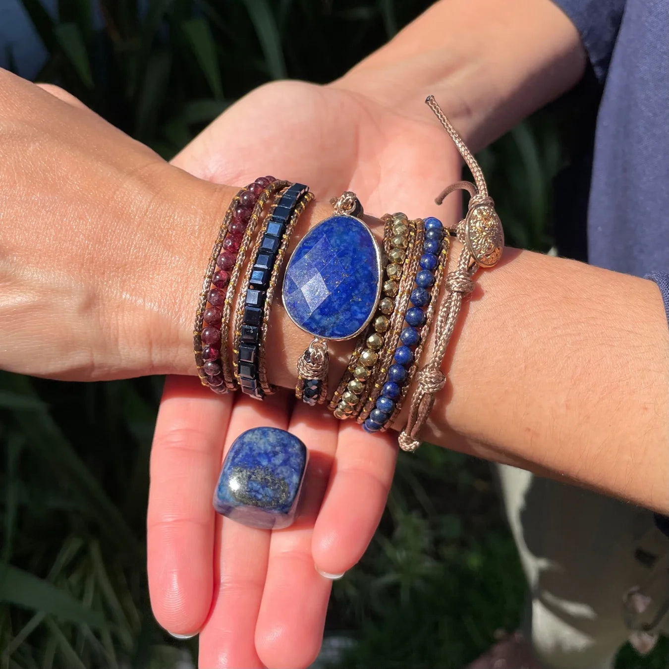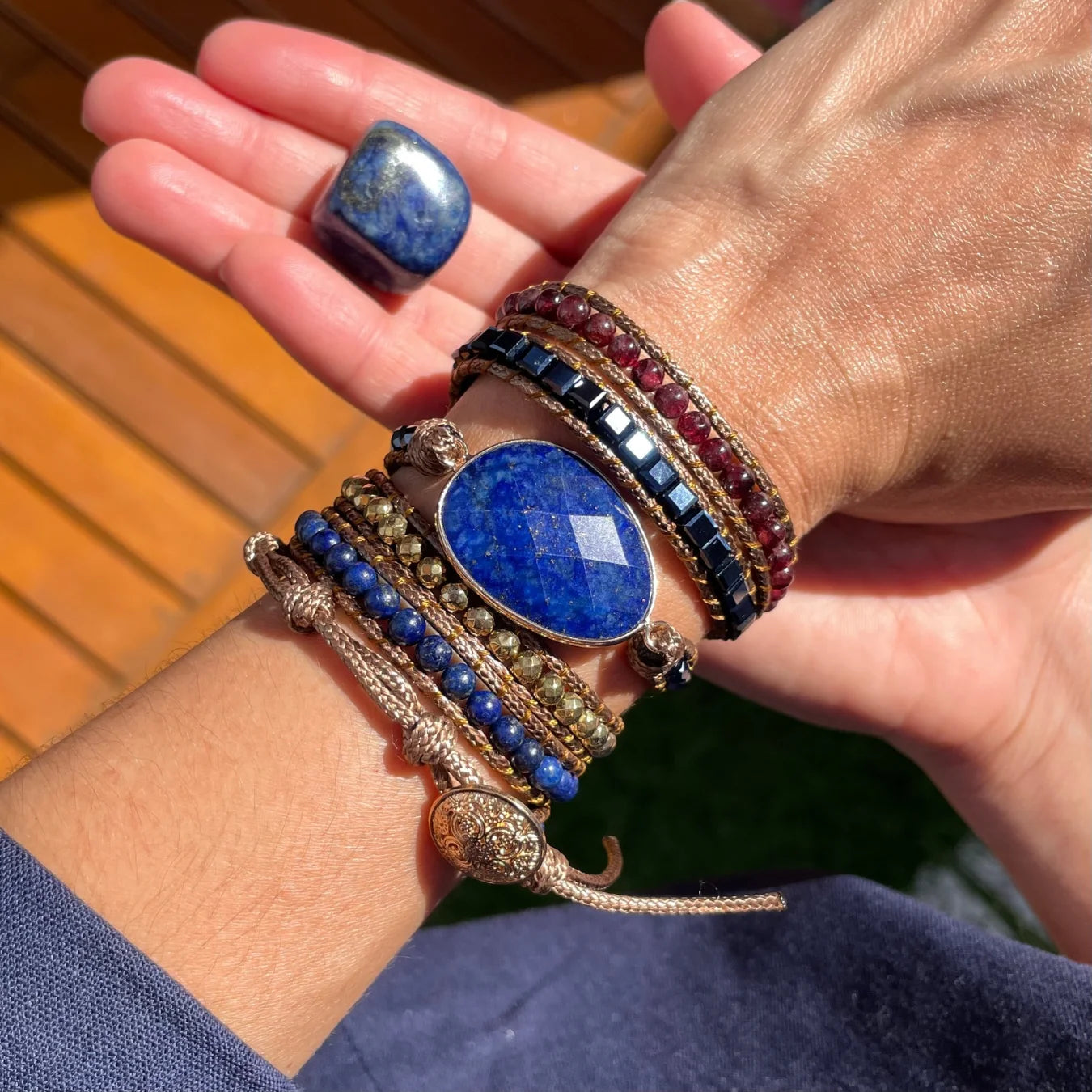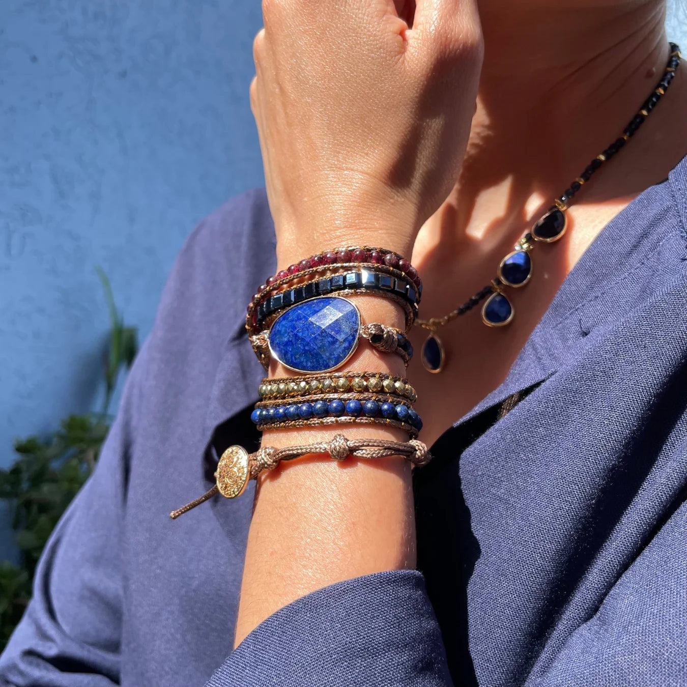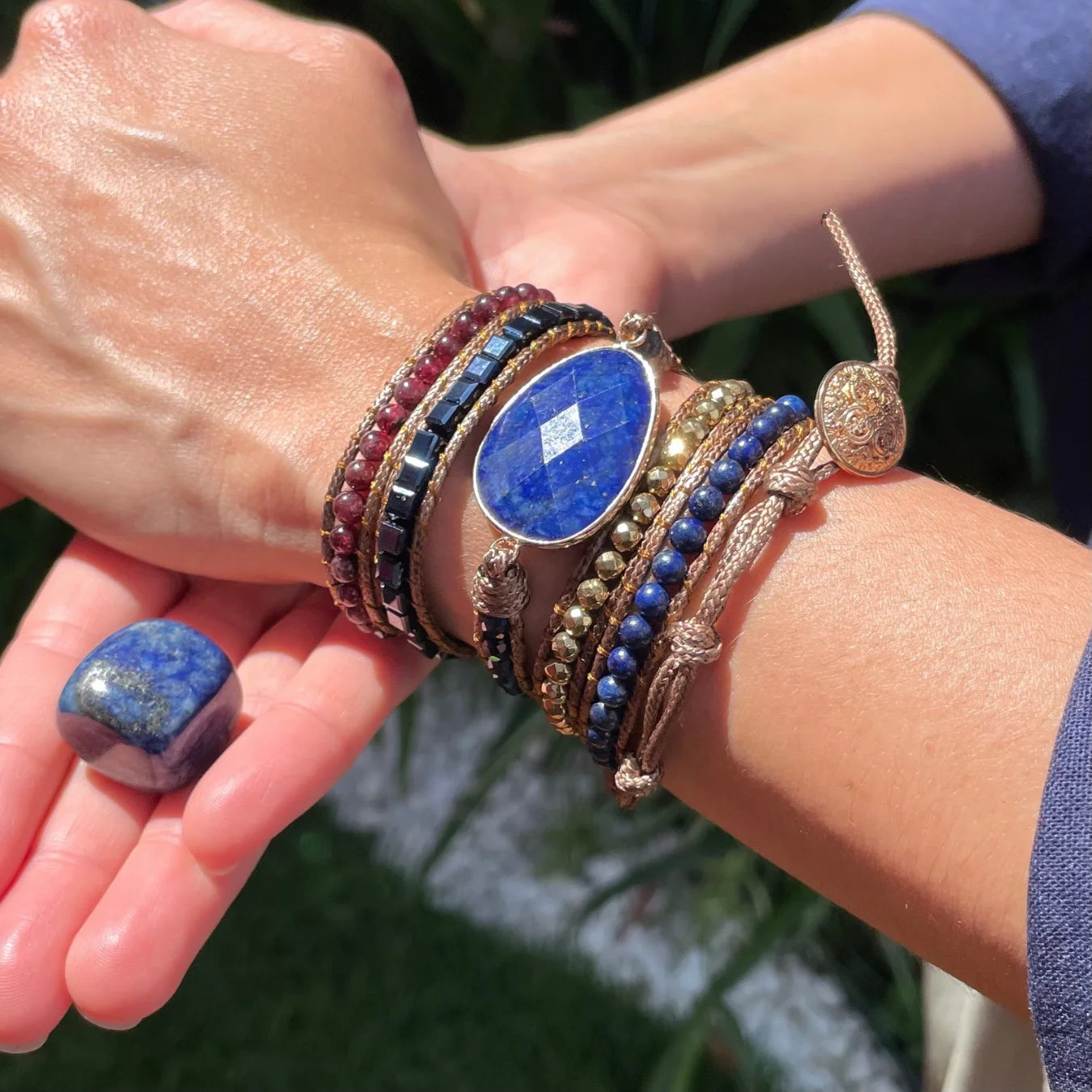 A Pulseira Kosmos de Lápis Lazuli traz a conexão perfeita entre um azul misterioso e um vermelho profundo, que juntos despertam a harmonia e o equilíbrio entre as polaridades, o contraste ideal, que realça ainda mais a beleza dessa peça cheia de significado.