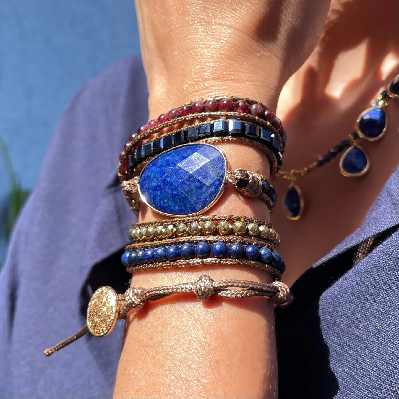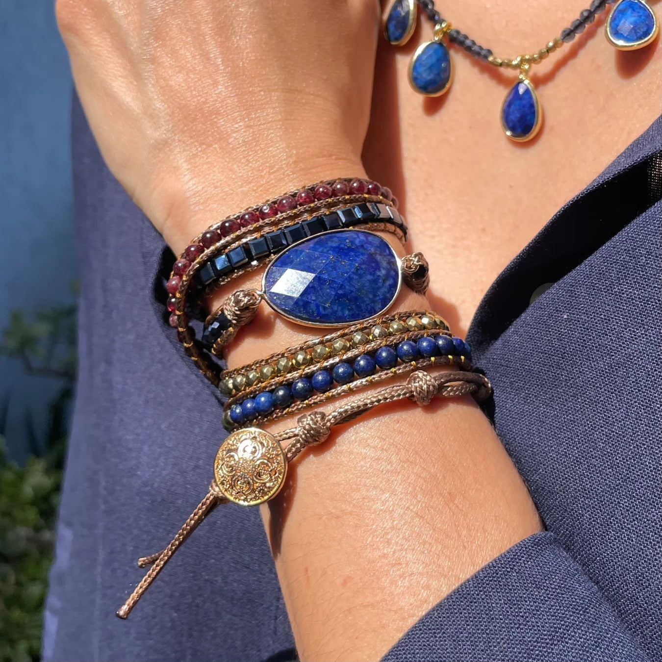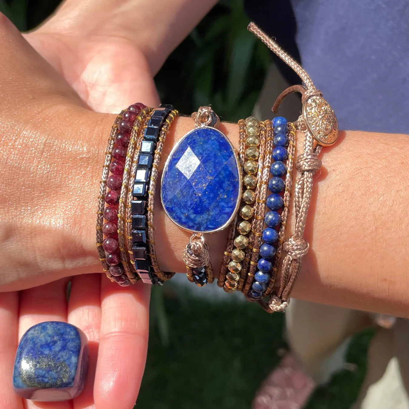 A Pulseira Kosmos de Lápis Lazuli traz a conexão perfeita entre um azul misterioso e um vermelho profundo, que juntos despertam a harmonia e o equilíbrio entre as polaridades, o contraste ideal, que realça ainda mais a beleza dessa peça cheia de significado.