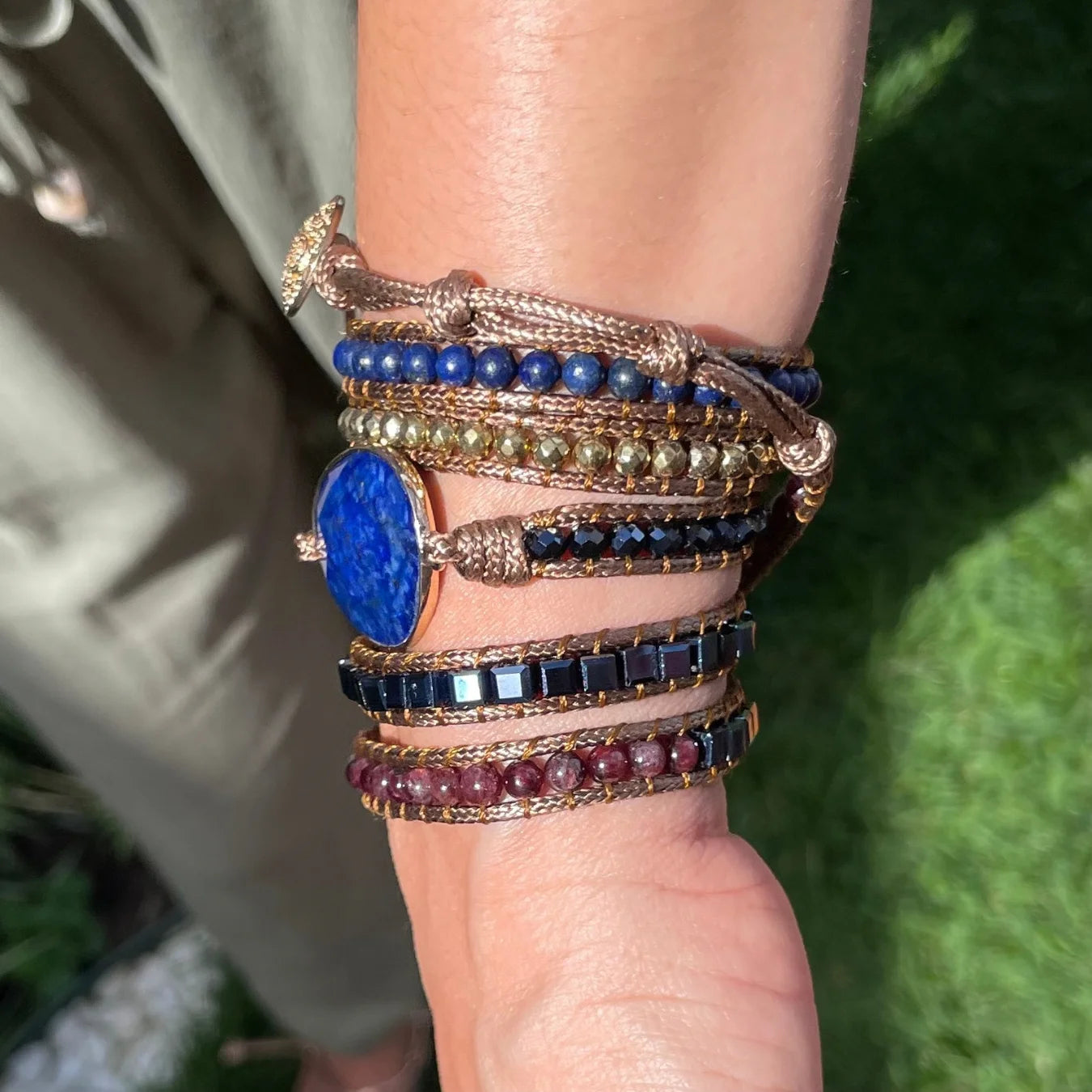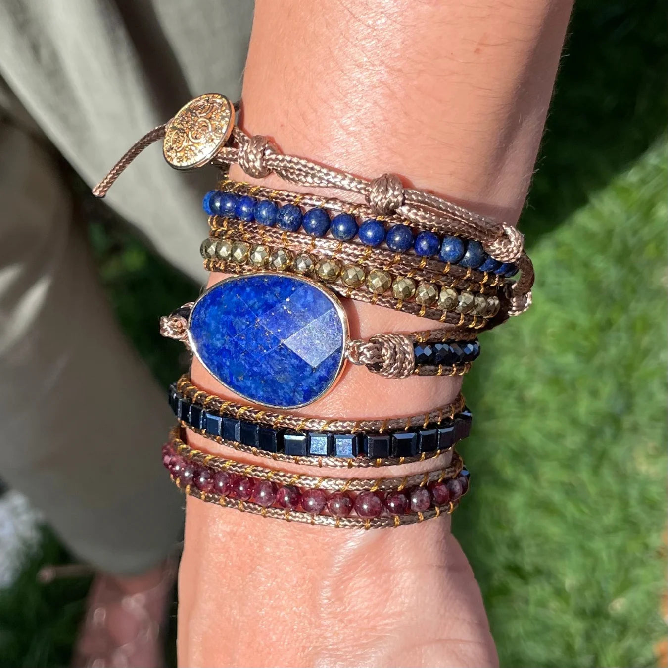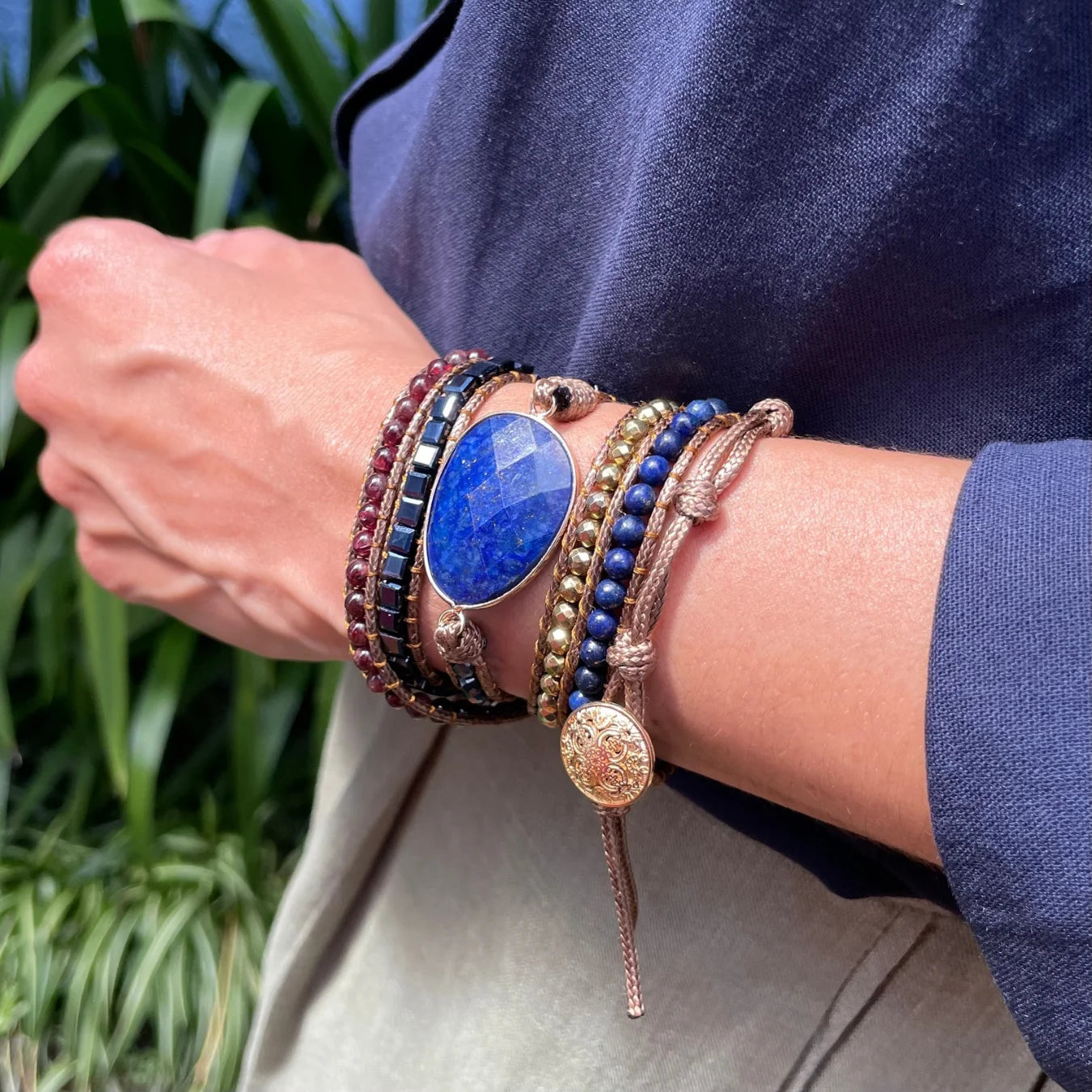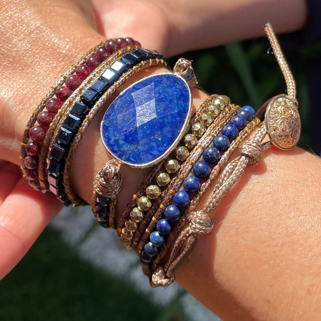 A Pulseira Kosmos de Lápis Lazuli traz a conexão perfeita entre um azul misterioso e um vermelho profundo, que juntos despertam a harmonia e o equilíbrio entre as polaridades, o contraste ideal, que realça ainda mais a beleza dessa peça cheia de significado.