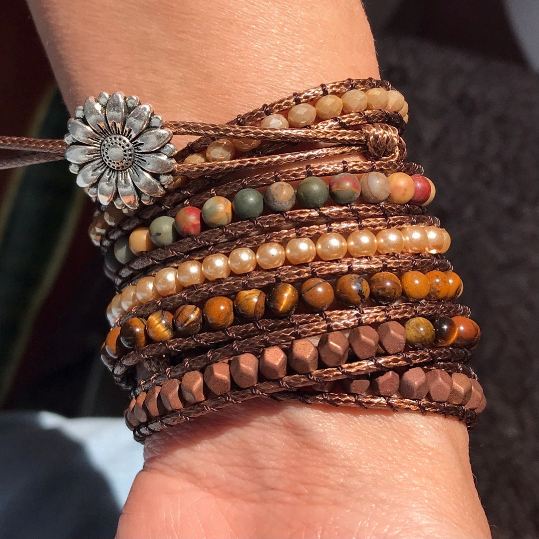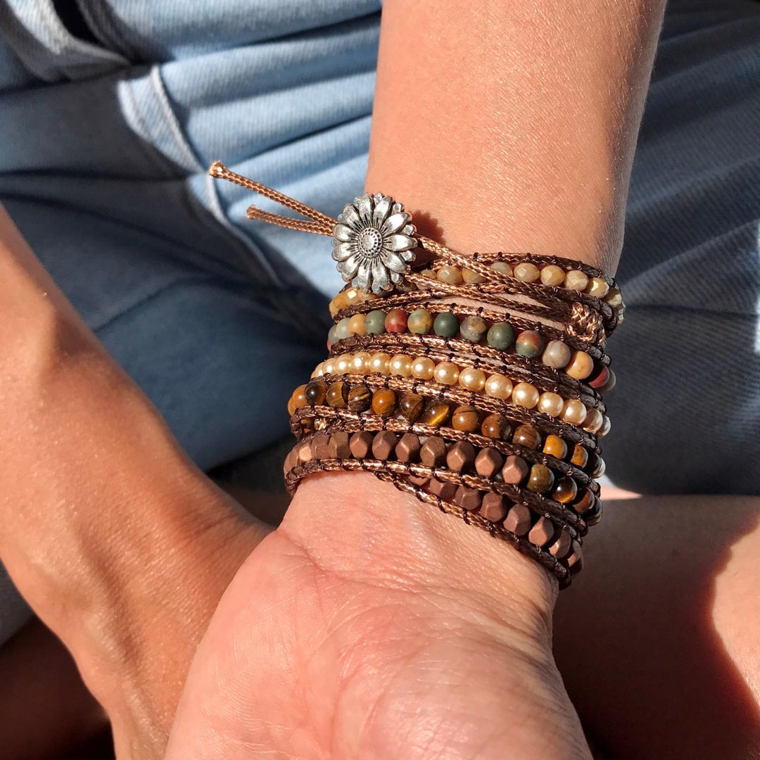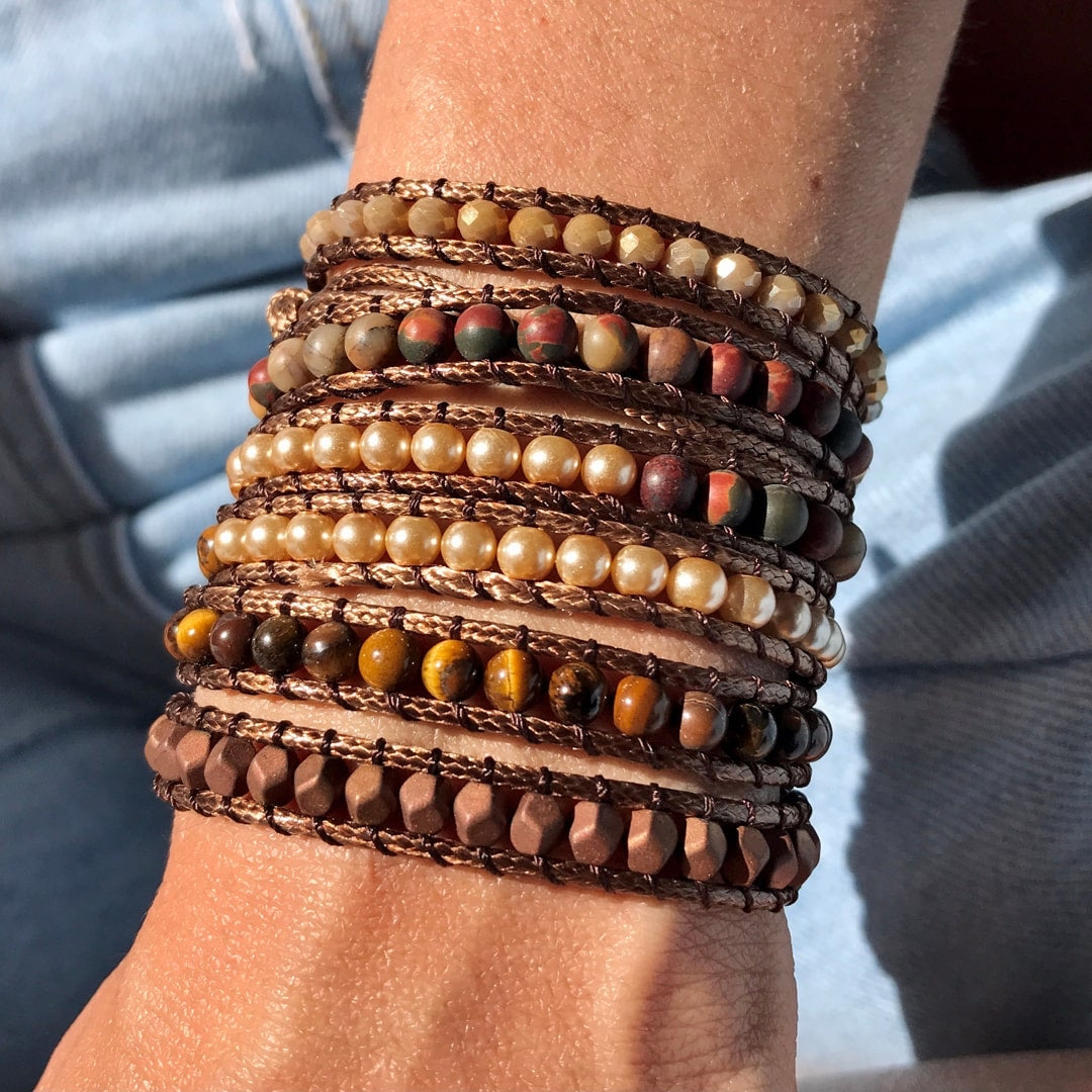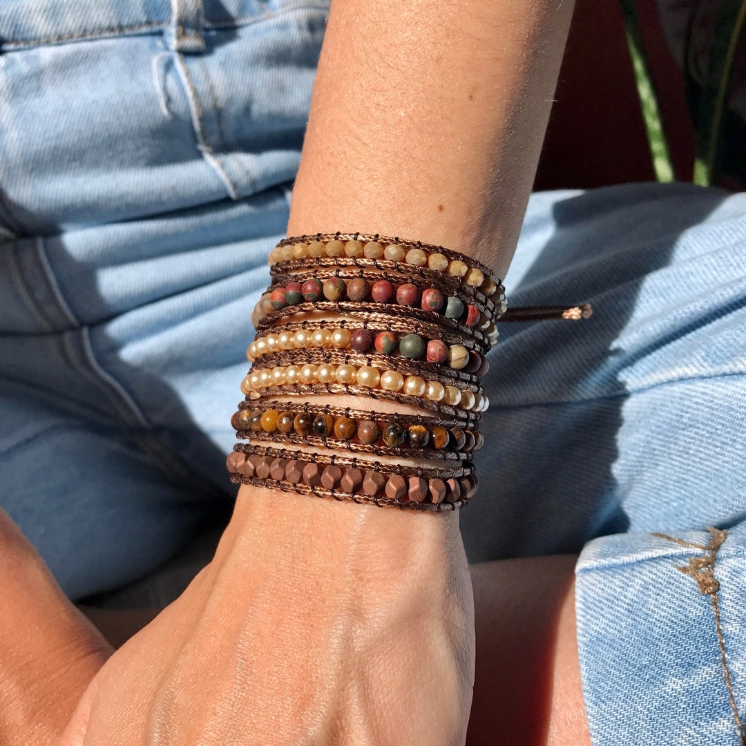 Essa pulseira é feita manualmente por nossos artesãos, a partir de uma técnica oriental extremamente delicada, onde as pedras naturais são “costuradas” uma a uma, criando uma harmonia entre as diferentes lapidações, cores e texturas das pedras.