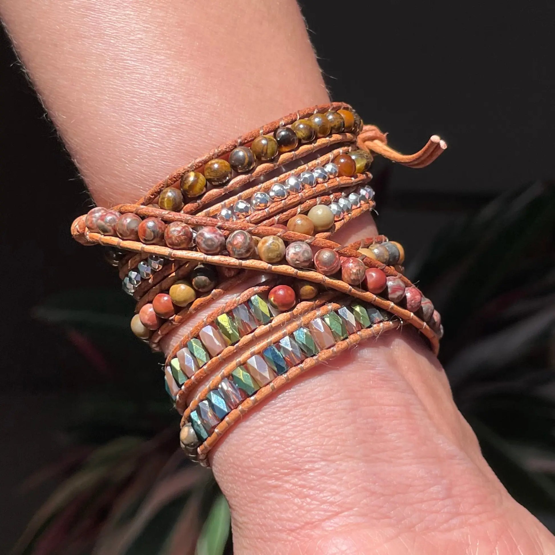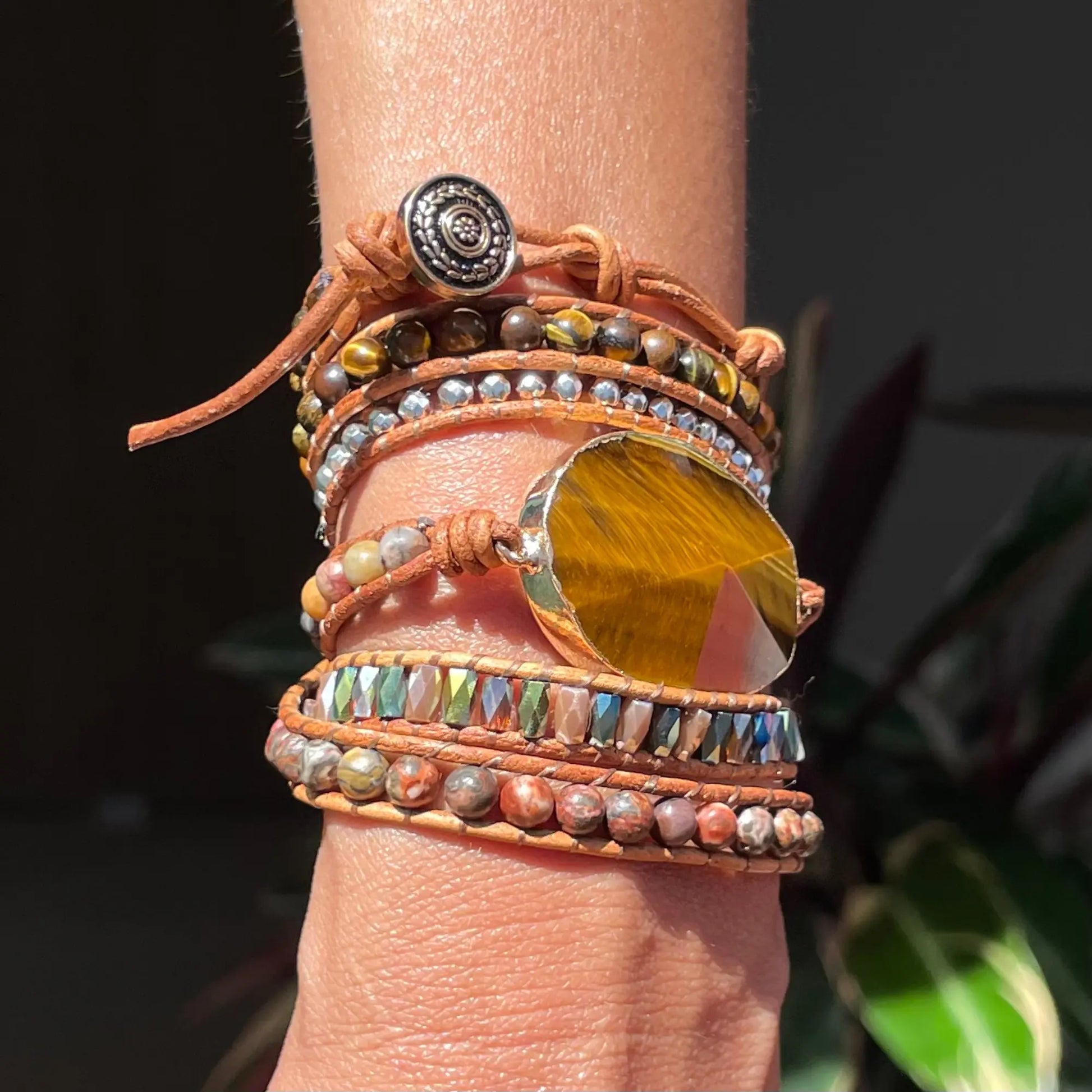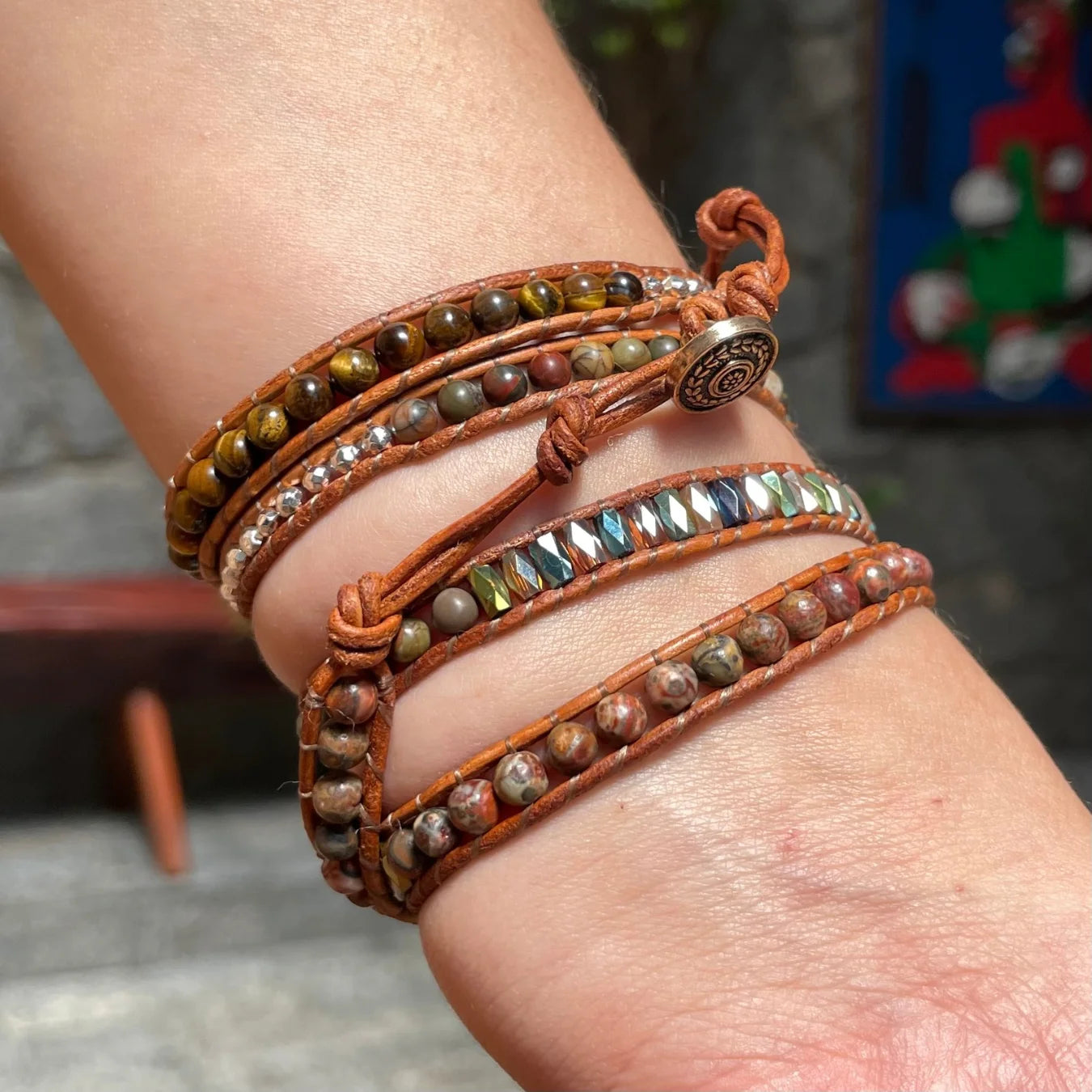 - Pedras naturais: Olho de Tigre, Jaspe Picasso e Hematita